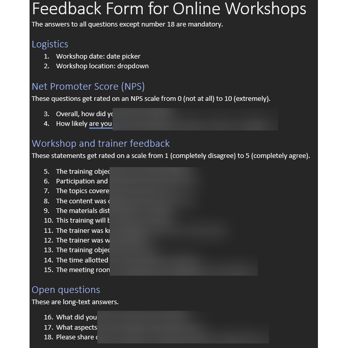 MS Word Template for collecting workshop feedback
